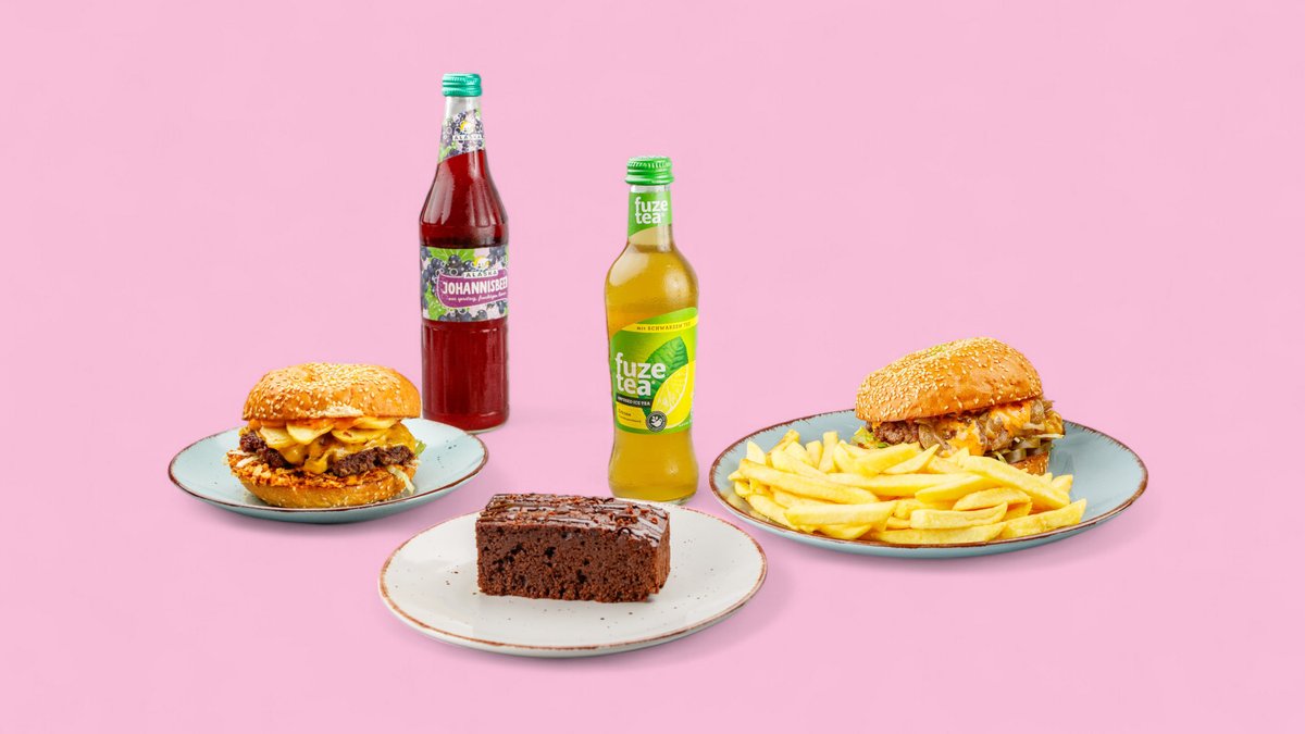2x Burger deiner Wahl Pommes frites 1x Nachtisch deiner Wahl 1x Getränk 1,0 l deiner Wahl Das Gericht wurde mit Schokolade zubereitet und kann Spuren von Nüssen enthalten