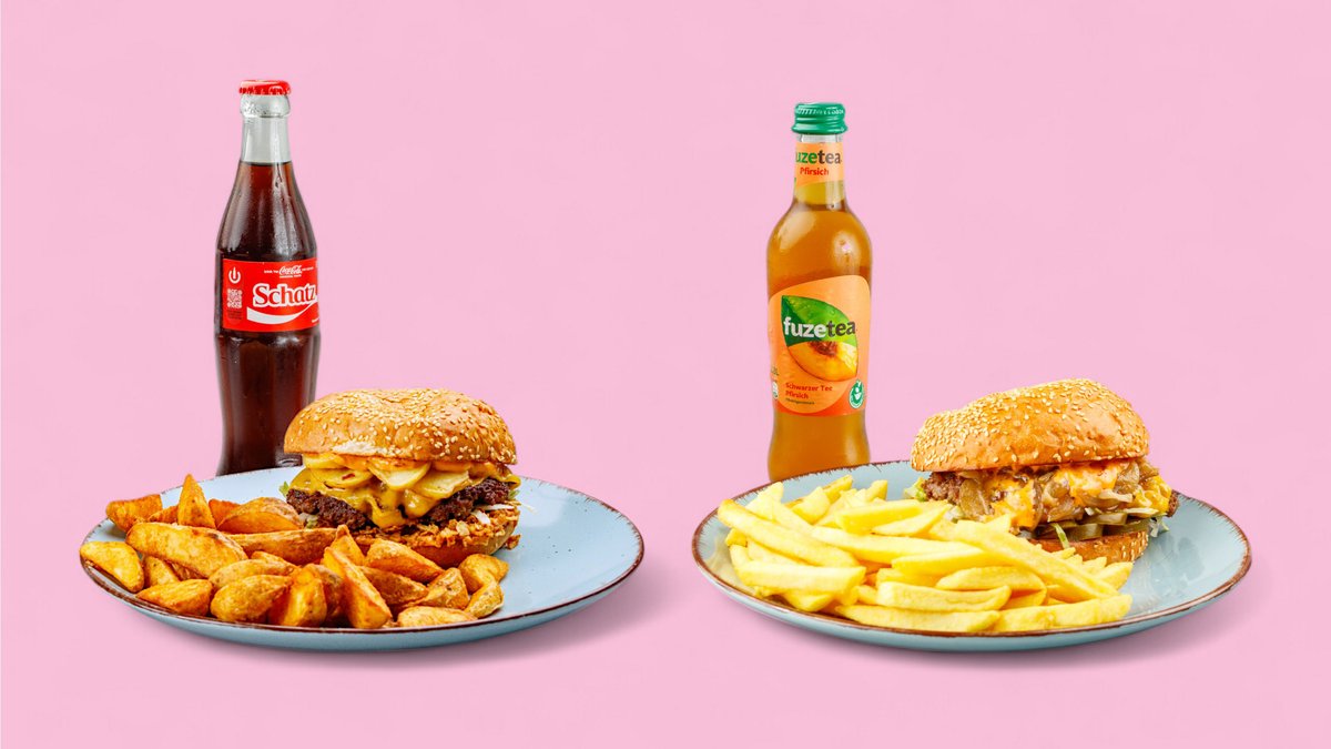 2x Burger deiner Wahl 2x Beilagen deiner Wahl 2x Getränke 1,0 l deiner Wahl