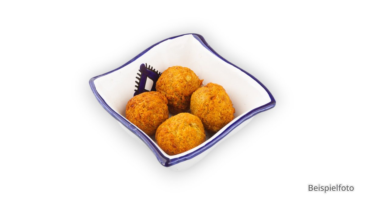 mit 4x frittierten Bällchen aus pürierten Kichererbsen, Karotten und Petersilie