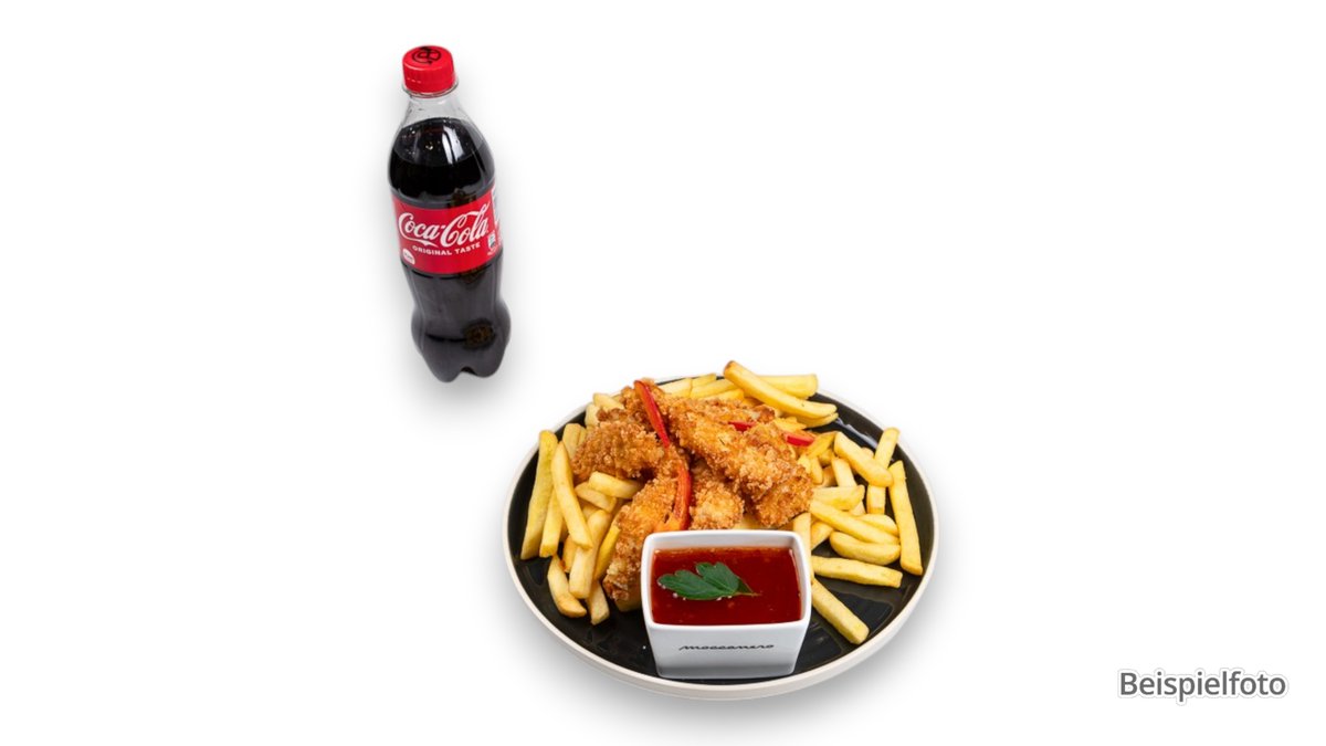 alle Menüs werden mit Pommes frites und einem Getränk 0,2 l serviert