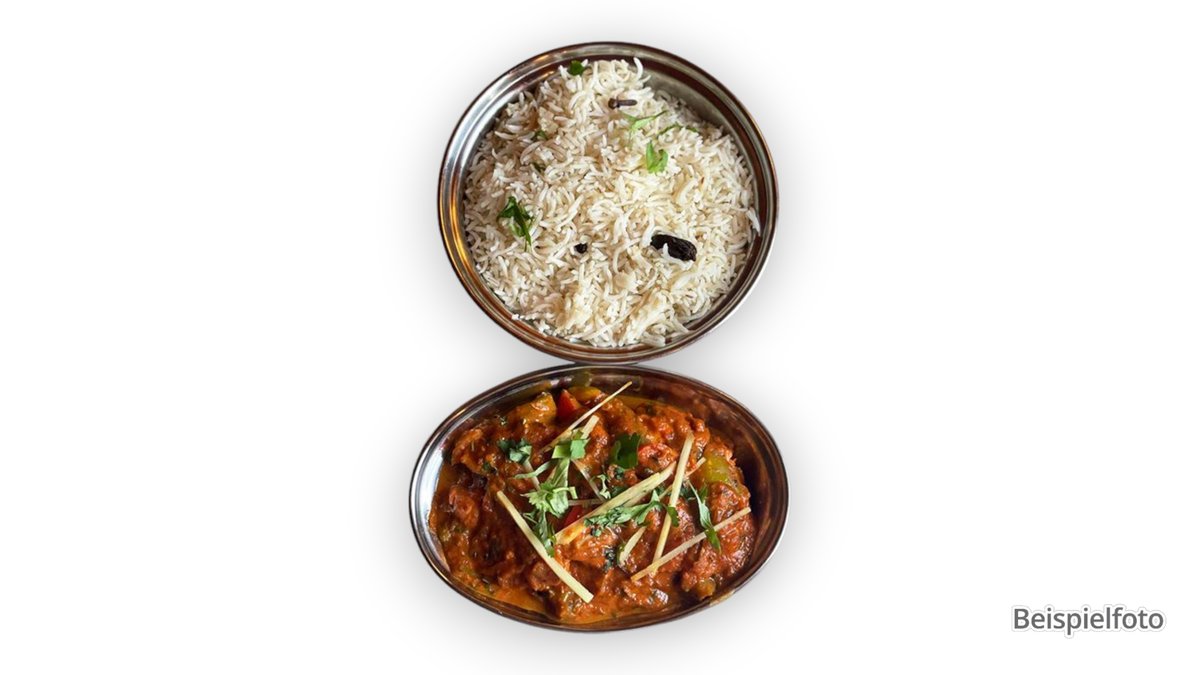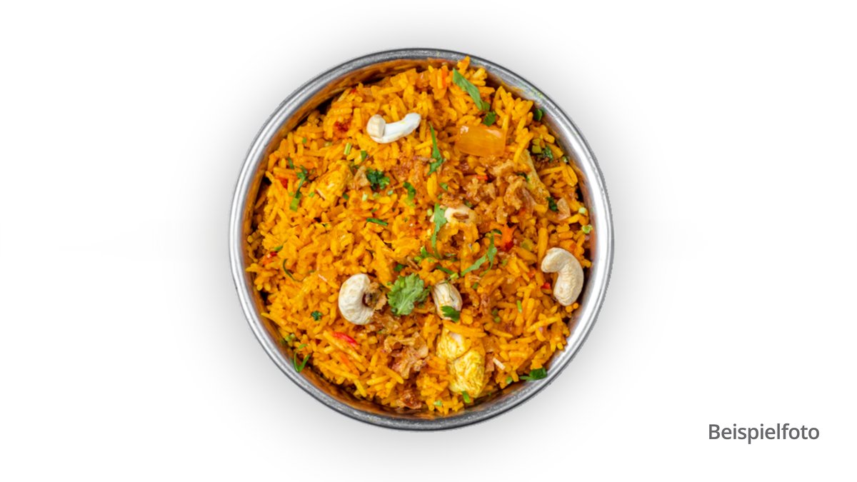Basmatireis mit Hähnchenfleisch, Gemüse und speziellen Gewürzen