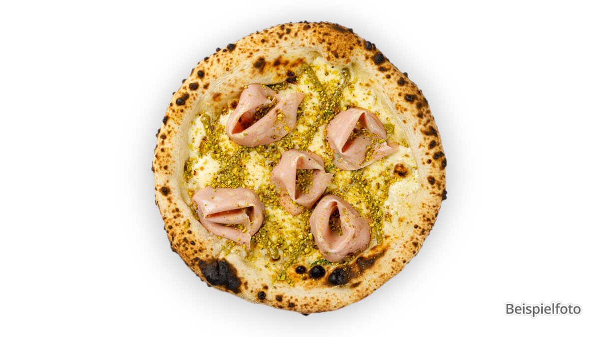mit Schinken vom Pute, frischen Champignons, feinen Peperoni und knackigen Oliven