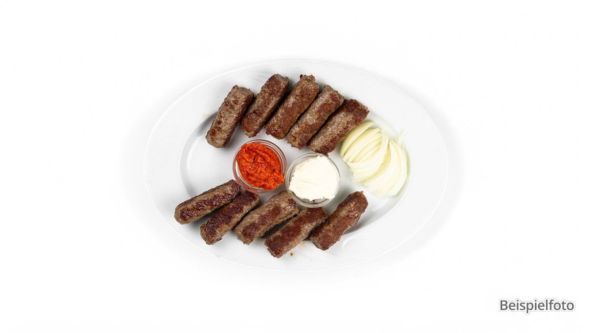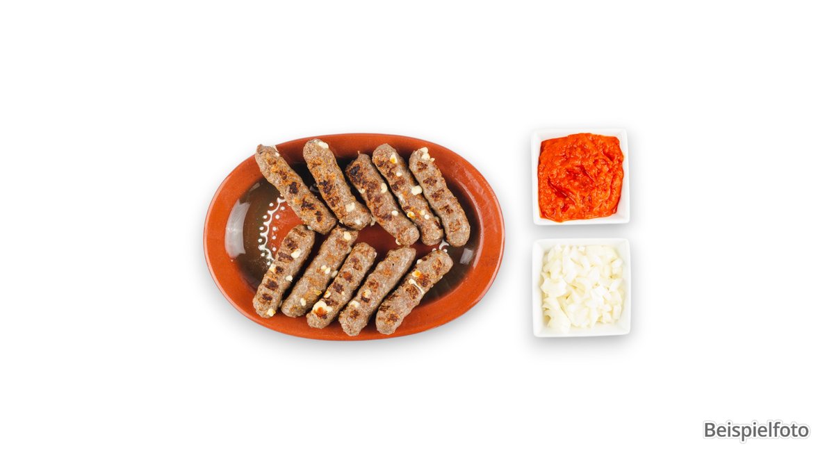 für 2 Personen 4x Cevapcici vom Kalb 2x panierte Putenschnitzel 2x Putenmedaillons gefüllt mit Käse 2x Pljeskavica vom Kalb