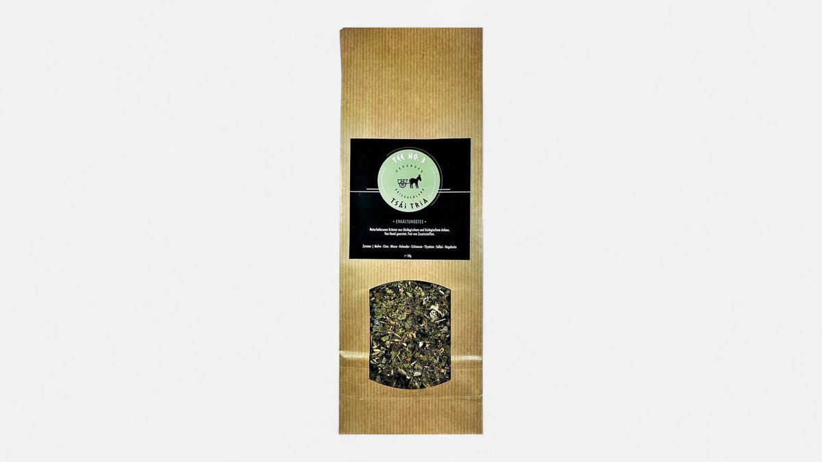Herbal Tea Blend for Colds From organic cultivation, natural and pure. Ingredients and known effects of the herbs: Mallow, Cistus, Mint, Elderflower, Echinacea, Thyme, Sage, Rosehip. * **Mallow** balances hormone levels, improves memory and concentration, and supports digestion by easing stomach discomfort and nausea. It also has antibacterial properties that help defend against illness. * **Cistus** is the healing herb for body, mind, and soul. Its antioxidant potential is three times higher than green tea and four times higher than Vitamin C. It protects against free radicals and helps prevent premature aging of cells. * **Mint** has anti-inflammatory effects and kills germs in the mouth and throat. It clears the airways and soothes the nasal mucosa. * **Elderflower** inhibits inflammation in the tissues. Along with other antioxidants, it protects and repairs cells, and it suppresses the growth of pathogens. * **Echinacea** is the ultimate immune booster. * **Thyme** has antibacterial, anti-inflammatory, and expectorant properties. * **Sage**: The tannins in the plant have an astringent effect on inflamed mucous membranes. This soothes, alleviates pain, and promotes healing. Additionally, sage can kill viruses and bacteria. * **Rosehip** contains a lot of Vitamin C and has long been considered an effective remedy for colds. Preparation: Pour one tablespoon of the tea blend over 200 ml of hot but not boiling water. Cover and let steep for about 8 minutes.