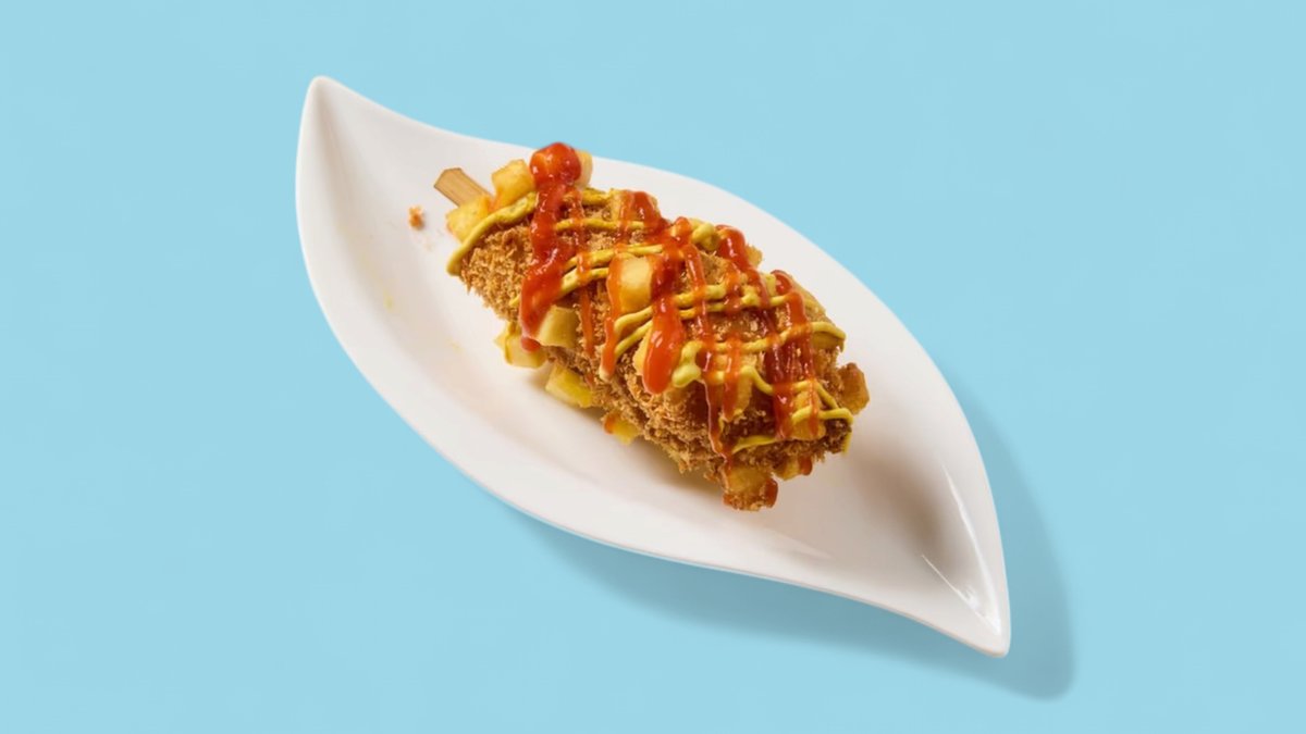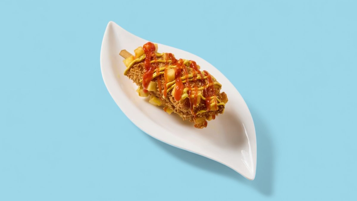 mit Hühner-Corndog, Kasar Käse und Putenwiener