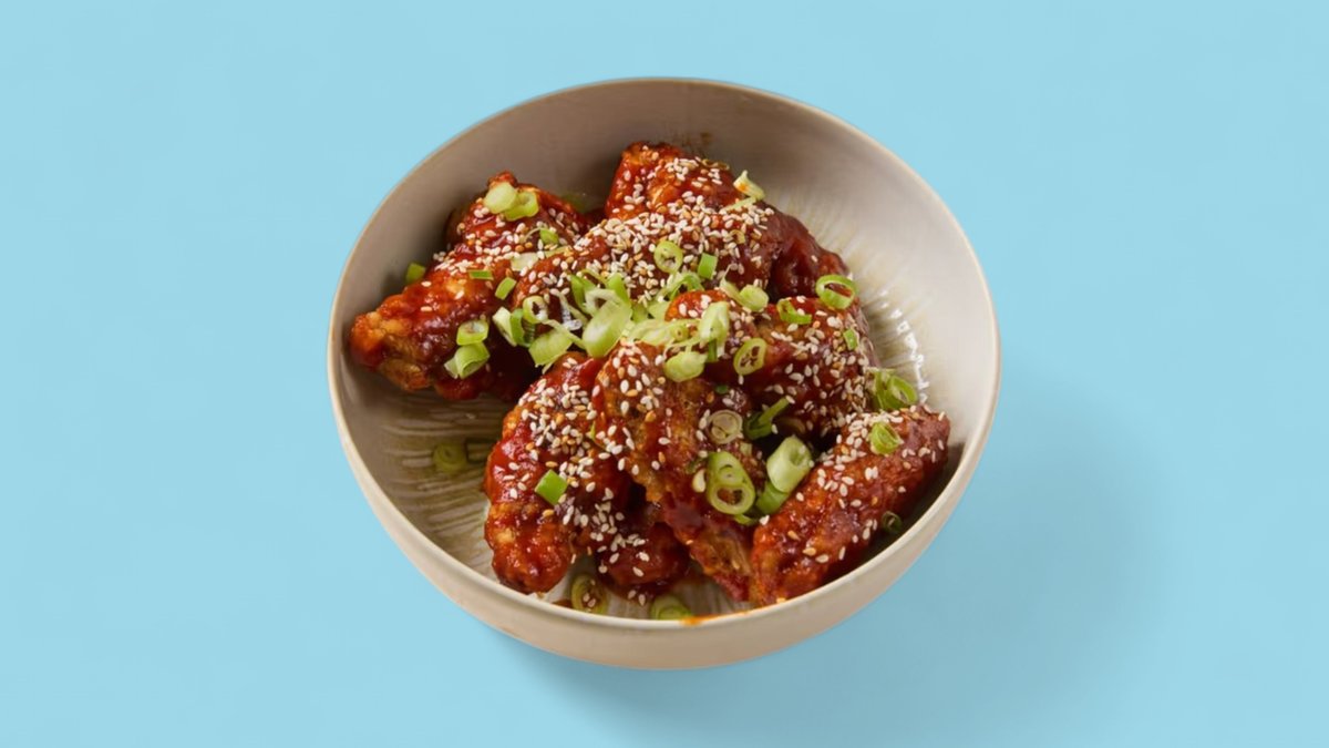 In pikanter hausgemachter Gochusoße. Wahlweise aus 8 oder 12 Chicken mit Knochen.