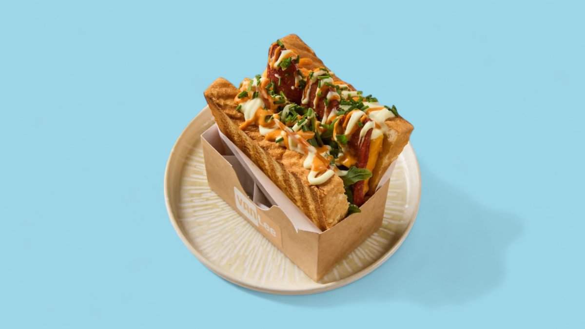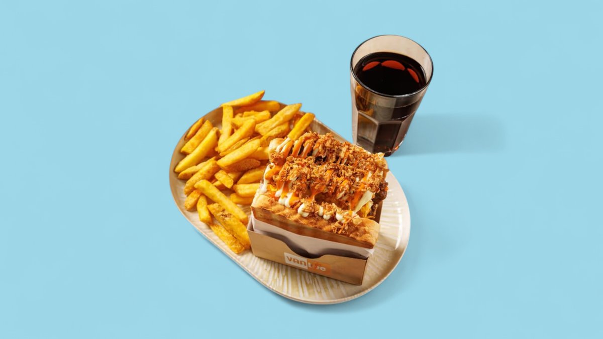 Mit knusprigem Chicken, Cheddar, Tomaten, Salat, Weißkraut, Kewpie-Mayo und Vanlee Soße.