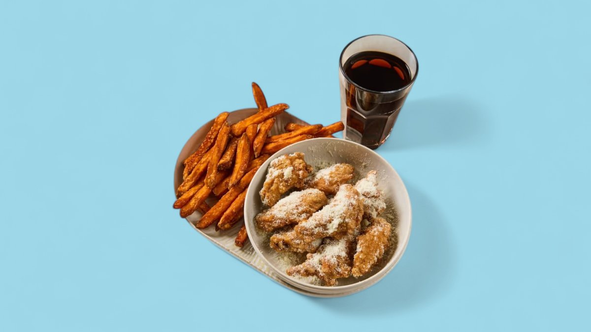 Alle Gerichte werden mit Rührei (Eggdrop) und Cheddar zubereitet. Zu jedem Menü gibt es entweder Pommes oder Süßkartoffeln und ein Softdrink.