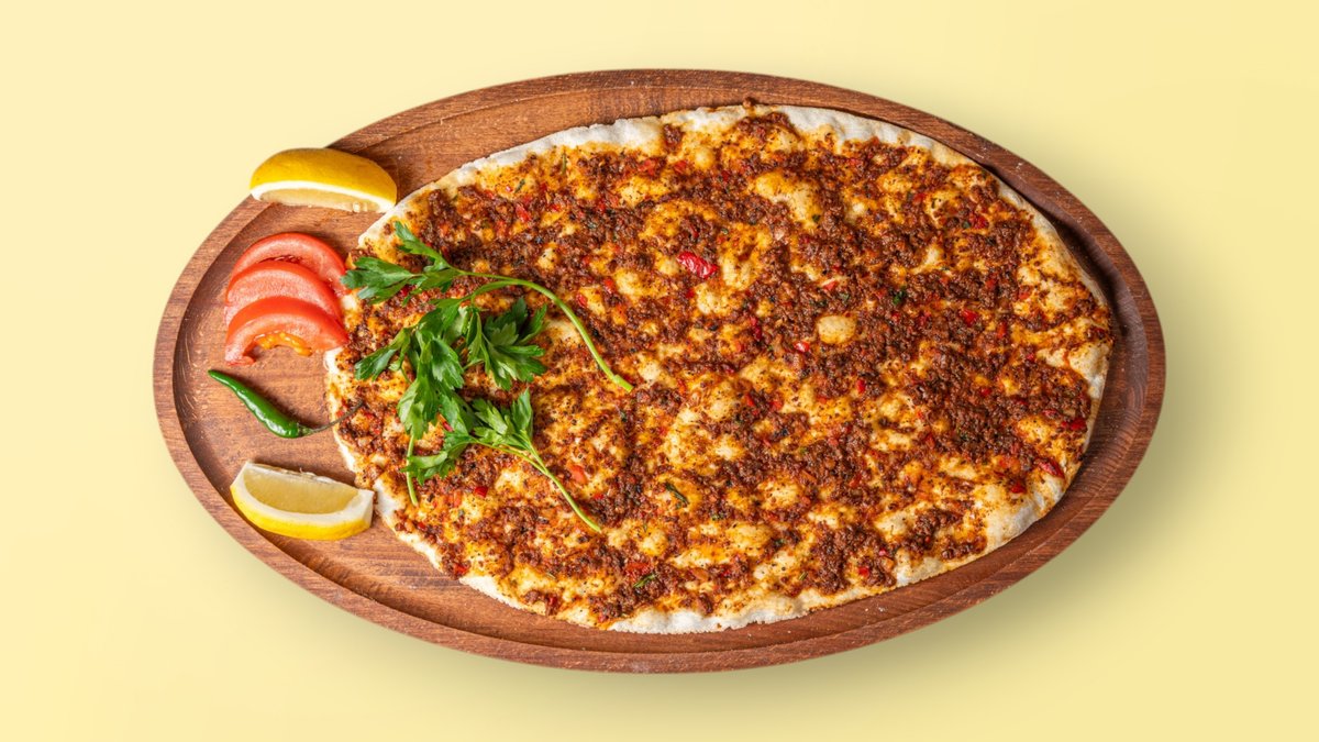 turkish pizza a thin, crispy flatbread topped with a spicy minced beef topping, without additional fillings
