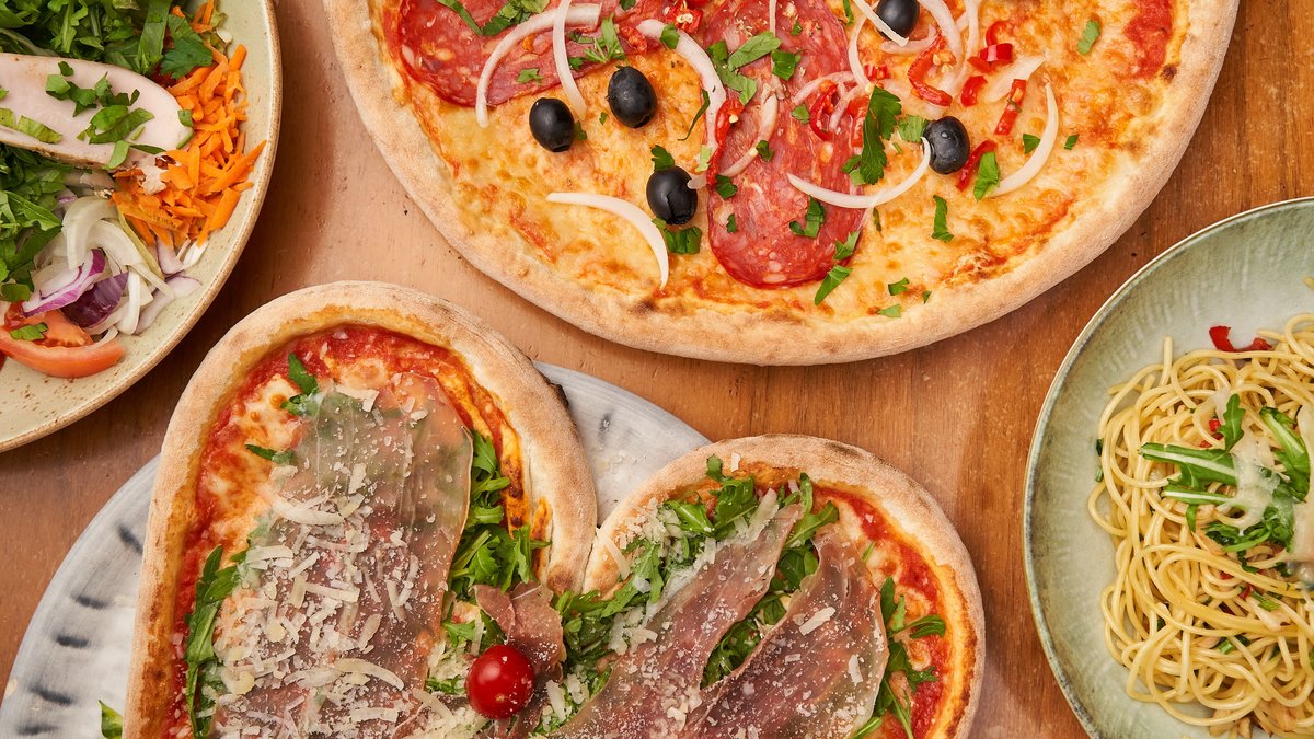 Classic Italian dishes: Pizza pasta and fresh salads 🇮🇹