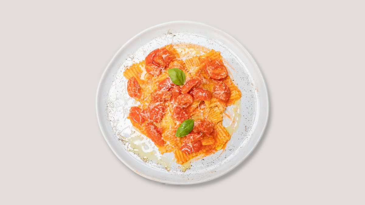 Ravioli mit Kirschtomaten und Basilikum