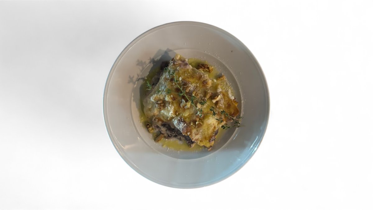 Lasagna con radicchio , taleggio e noci