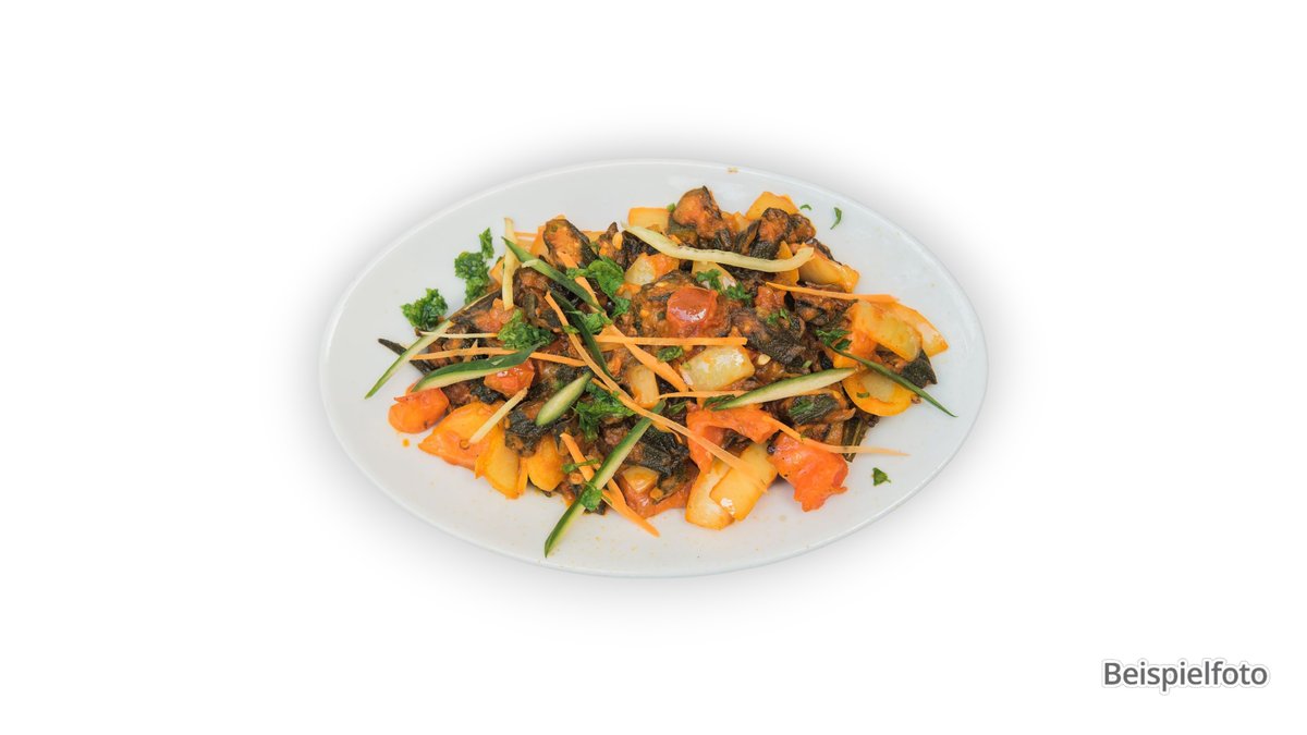 with various fried vegetables, curry and tandoori spices