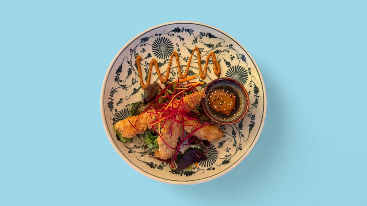 gebraten, gefüllt mit Gemüse dazu Sojasoße-Dip. Auf Wunsch auch gedämpft möglich.