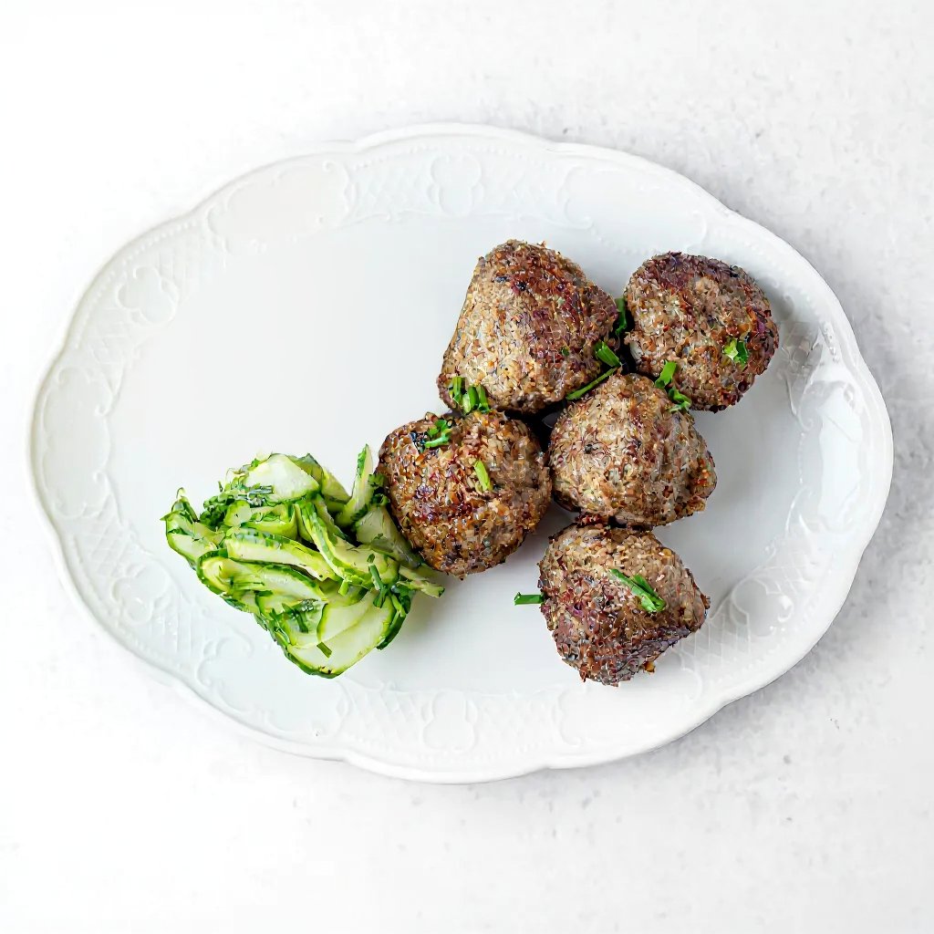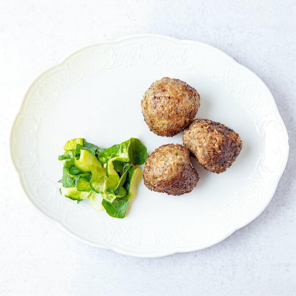 unsere Beef Balls sind hochwertige Minibuletten aus Rindfleisch aus artgerechter Haltung von der Bäuerlichen Erzeugergemeinschaft Schwäbisch Hall und werden mit hausgemachter Kräutersoße, Extras und Beilage deiner Wahl serviert