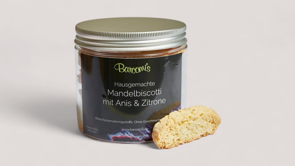 Enjoy the delightful taste of our Almond Biscotti with a hint of anise and a touch of lemon. Lovingly handcrafted, these biscotti are based on the recipe from Cynthia Barcomi’s I Love Baking baking book. Packaged in a clear, reusable container with a beautiful Barcomi's label, the biscotti come in a 10 cm high jar with a 10 cm diameter, sealed with a stylish aluminum lid. Flour, sugar, almonds, anise, egg, vanilla extract (no vanillin), baking soda, baking powder, salt.