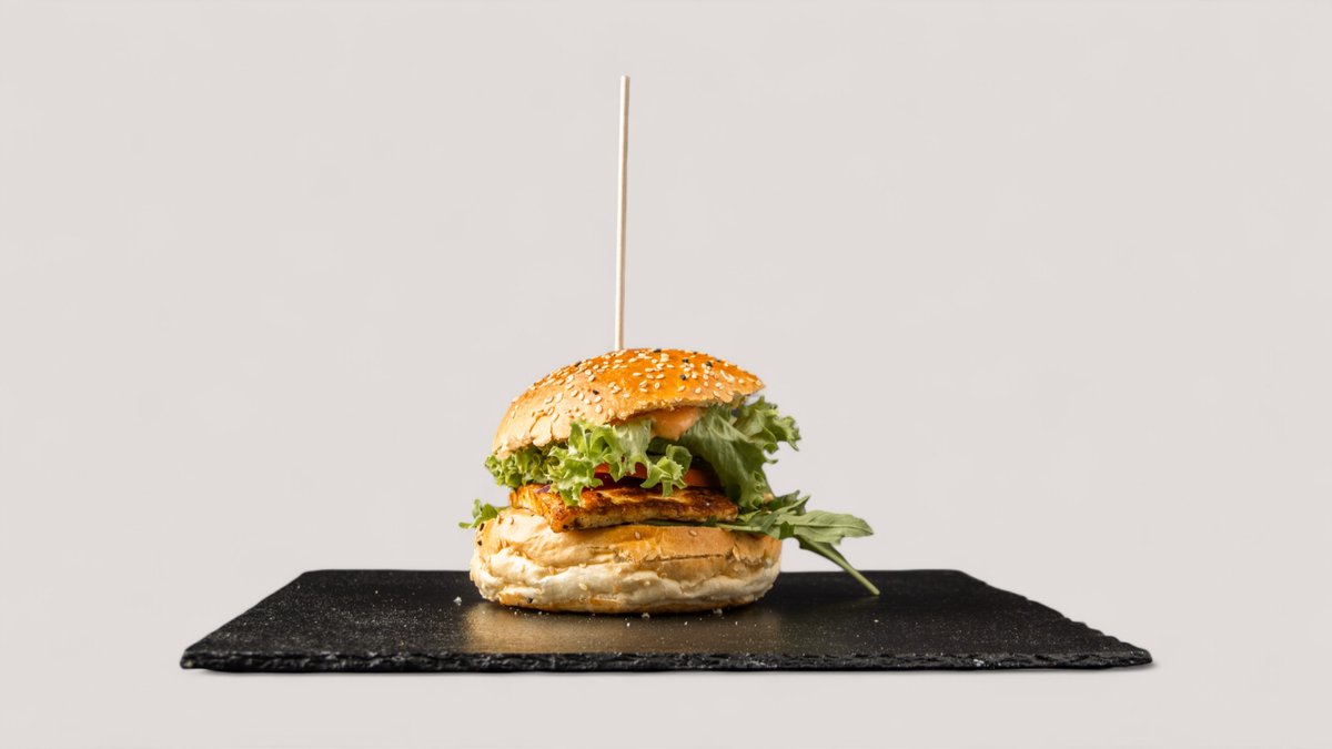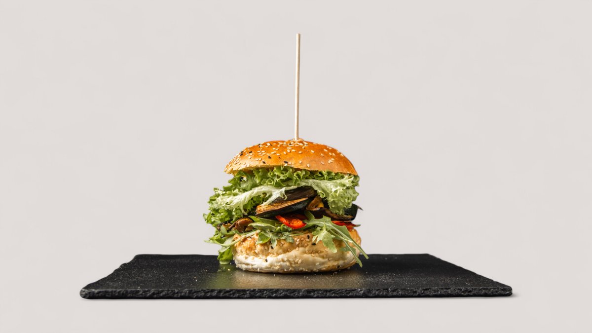 alle unsere vegetarischen Burger werden mit frischen knackigen Lollo Bionda, sauren Gurken, Tomaten, roten Zwiebeln und Rucola zubereitet, darauf kommt unsere berühmte hausgemachte Soße zwischen einem veganen Sesambrötchen