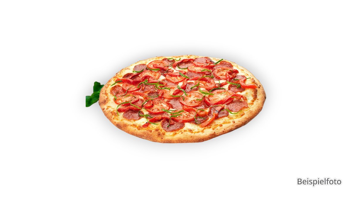 with salami, chicken ham, fresh champignons and chili peppers