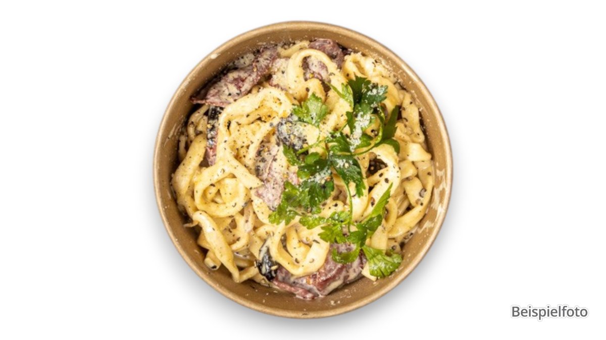 with beef, broccoli, fresh champignons and Parmesan cream sauce