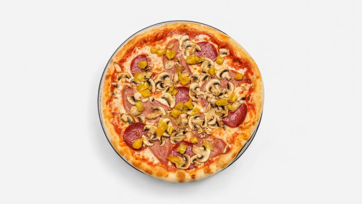 Mit Putenschinken, Rindersalami, Champignons und Peperoni