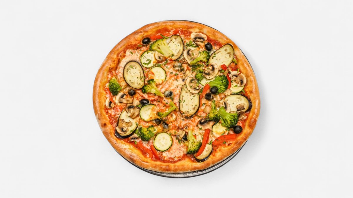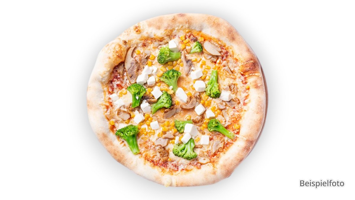 alle Pizzen sind ca. Ø 32 cm groß und werden mit veganer Käsesoße zubereitet