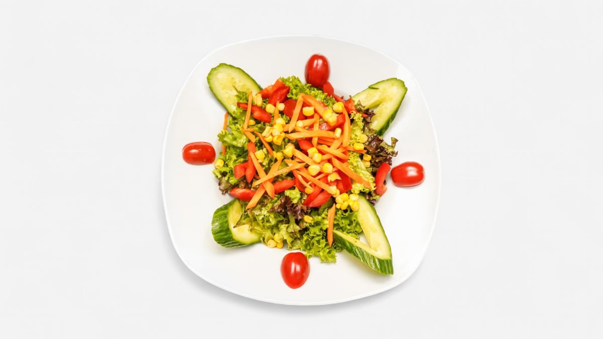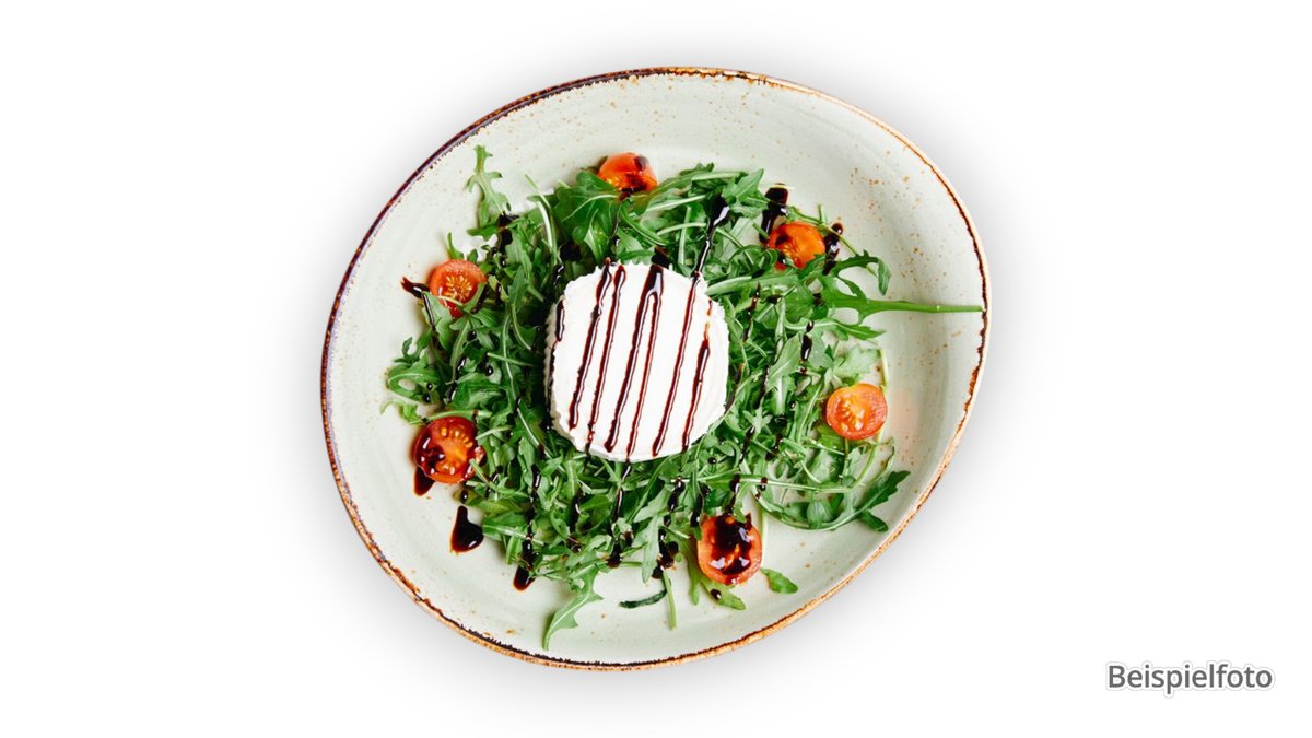 mit Blattsalat, Kirschtomaten, Gurken und Rucola