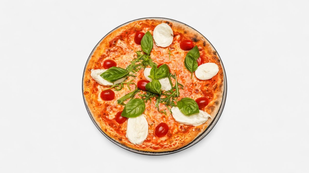 mit Büffelkäse, Kirschtomaten und Basilikum