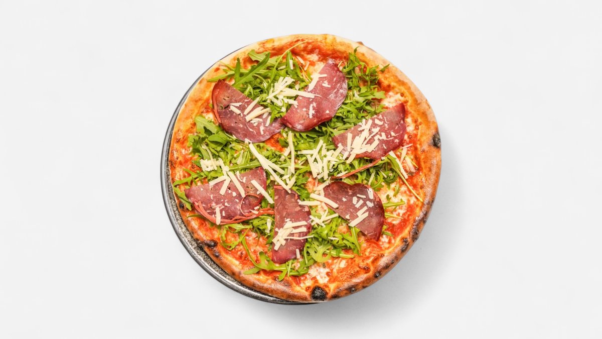 mit Rinderschinken, Champignons, Rindersalami und grünen Peperoni
