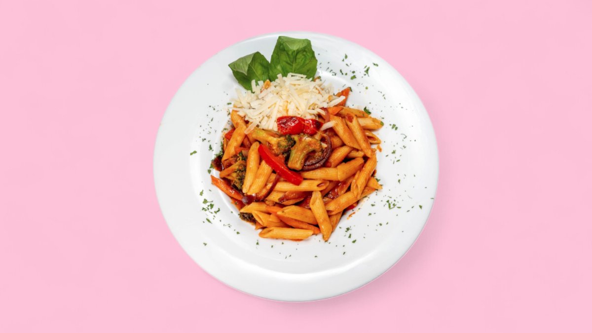 mit Zucchini, Paprika, Zwiebeln, Karotten, Brokkoli und Tomatensoße