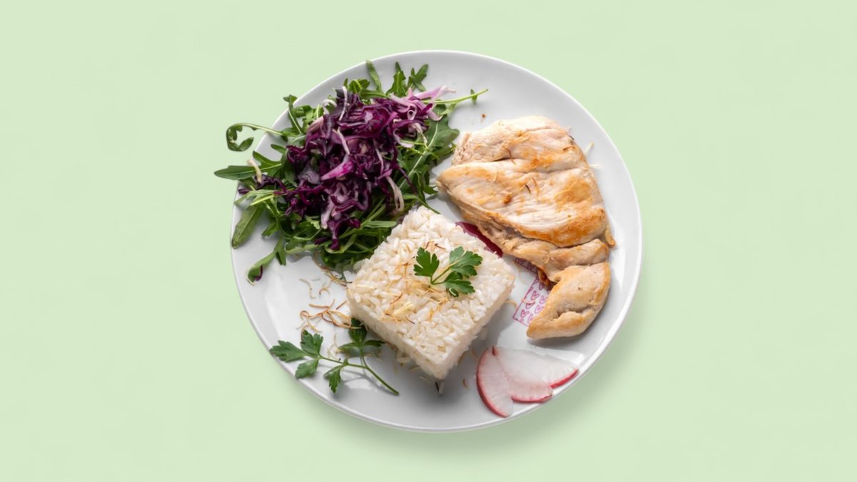 chicken in oriental marinade with rice and crispy coleslaw