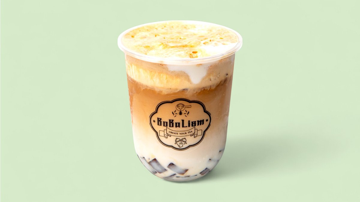 all drinks are prepared with warm brown sugar tapioca, a tea base, a flavor, a sweetness level, a topping of your choice and in a size of your choice