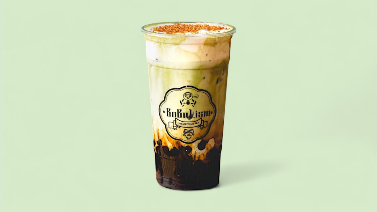 with a tea base, a flavor, a sweetness level, a topping of your choice and in a size of your choice