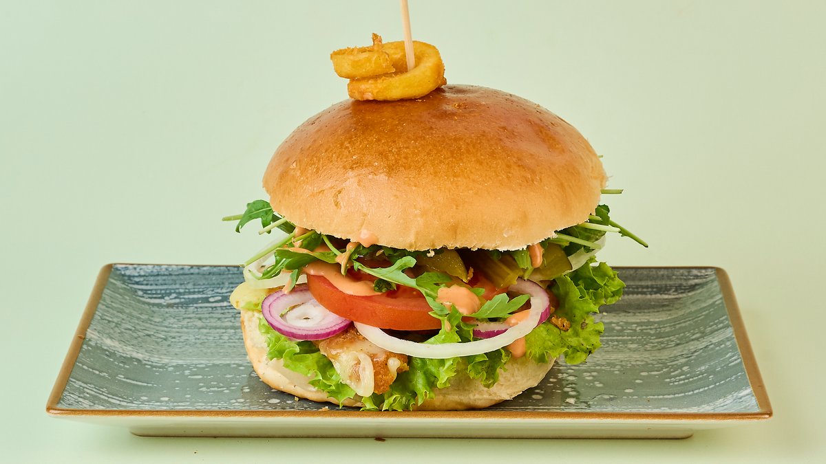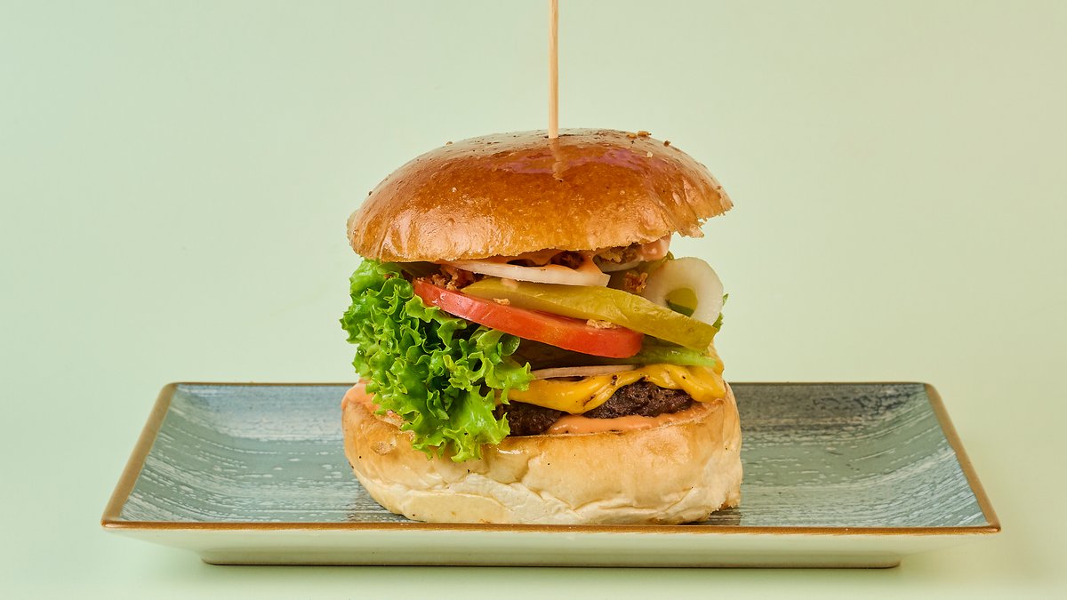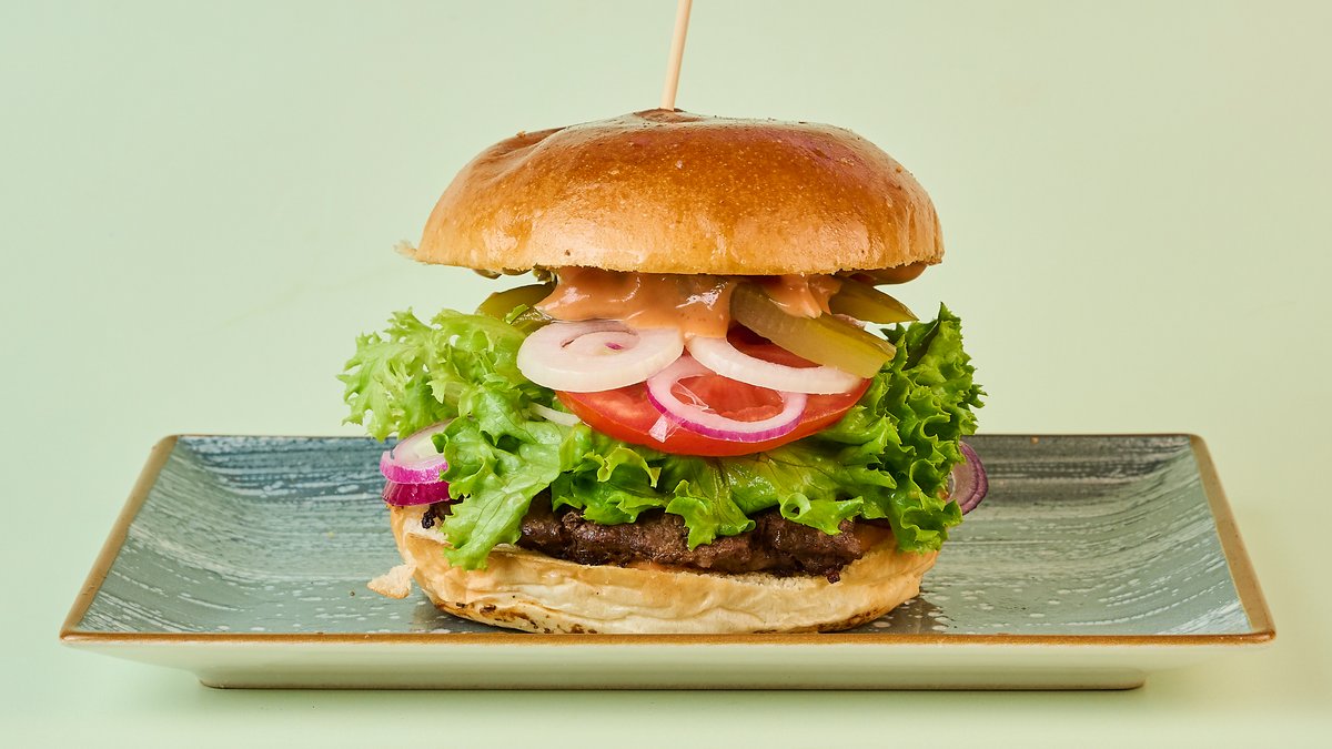 with 150 g beef patty, egg, sucuk, onion ring, cheddar and salad