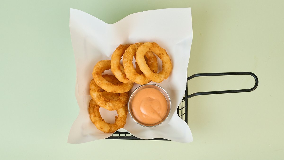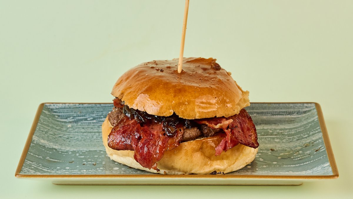with 150 g beef patty, bacon, fried onions and BBQ sauce