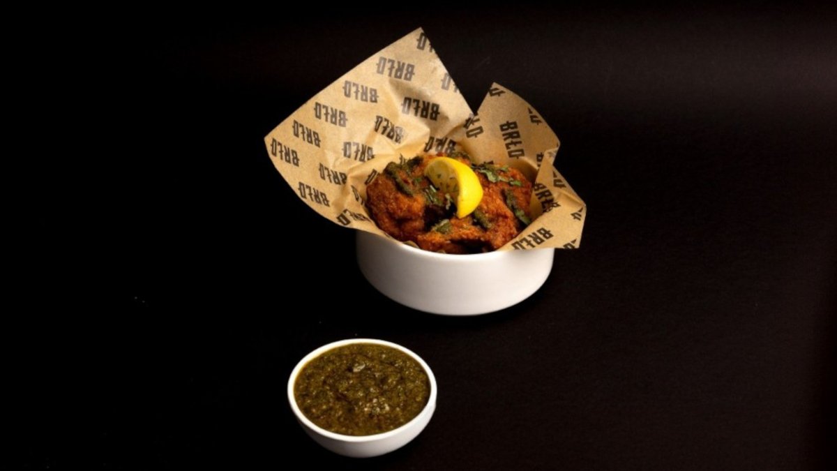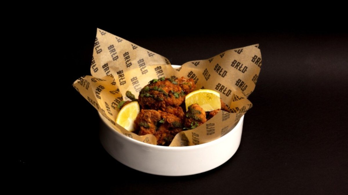 alle Gerichte werden mit in BRLO Pale-Ale-Backteig frittierte Keule und Flügel vom Kikok Maishähnchen, Chili-Mayonnaise und frischem Koriander zubereitet