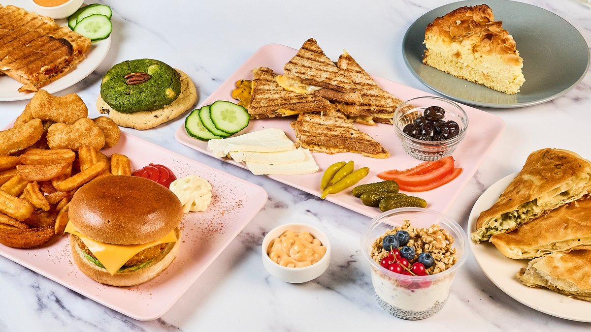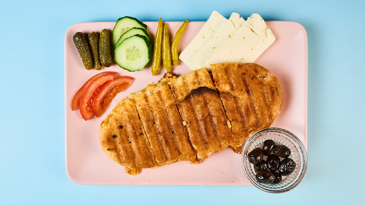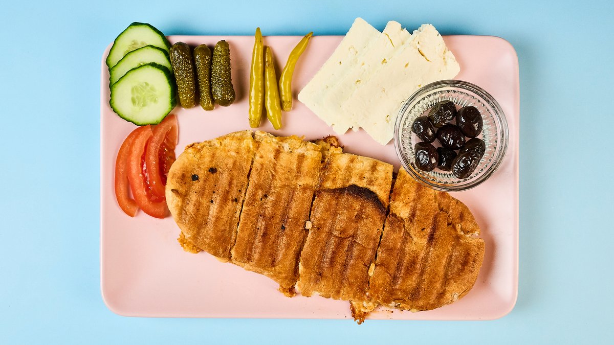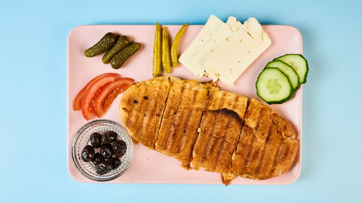 Butter, Tomatenmark, Philadelphia, Gouda & als Beilage Oliven, türkischer Schafskäse, Cornichons, Peperoni