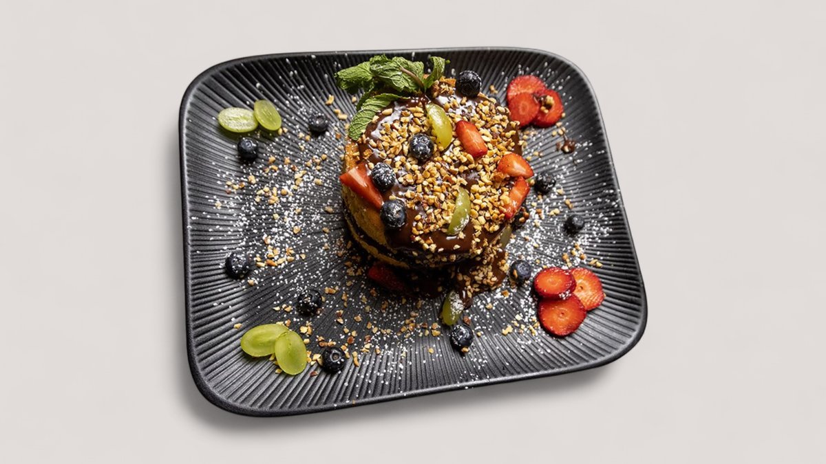 2x fluffige Pfannkuchen mit heissem Schokoladensoße
