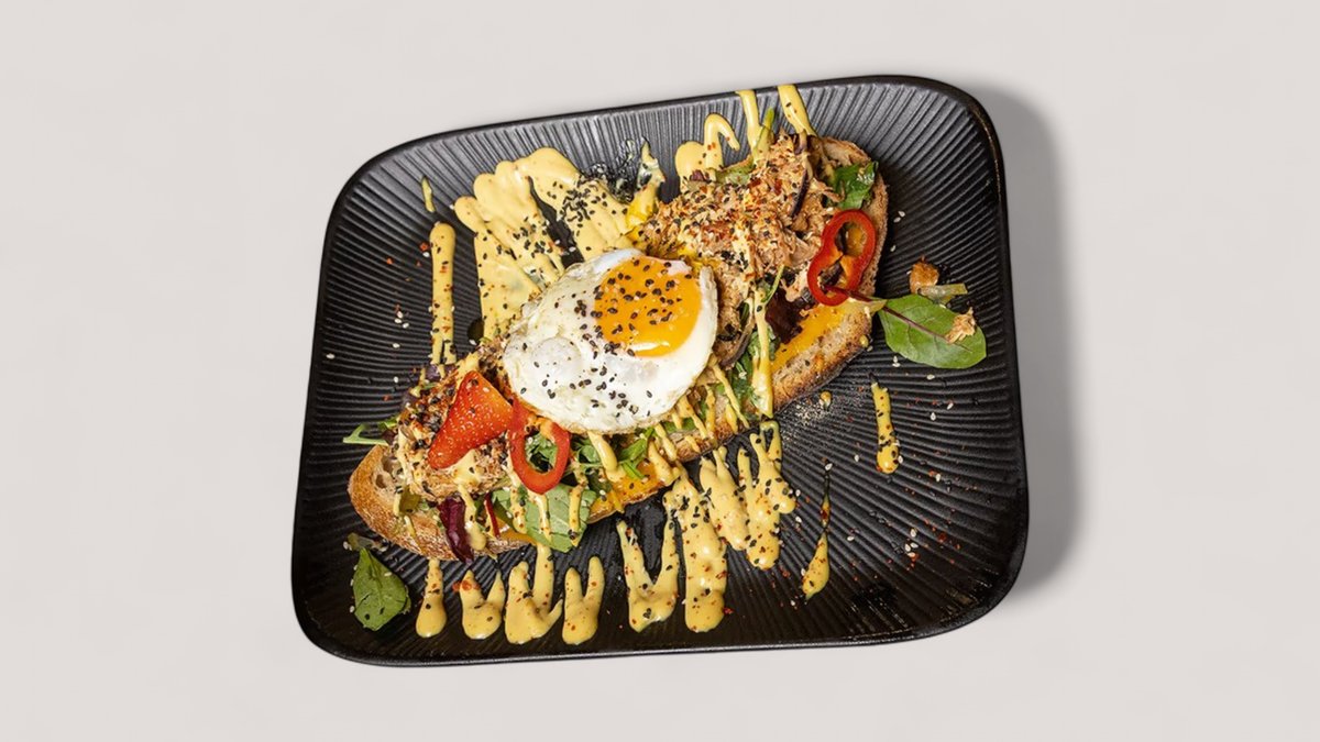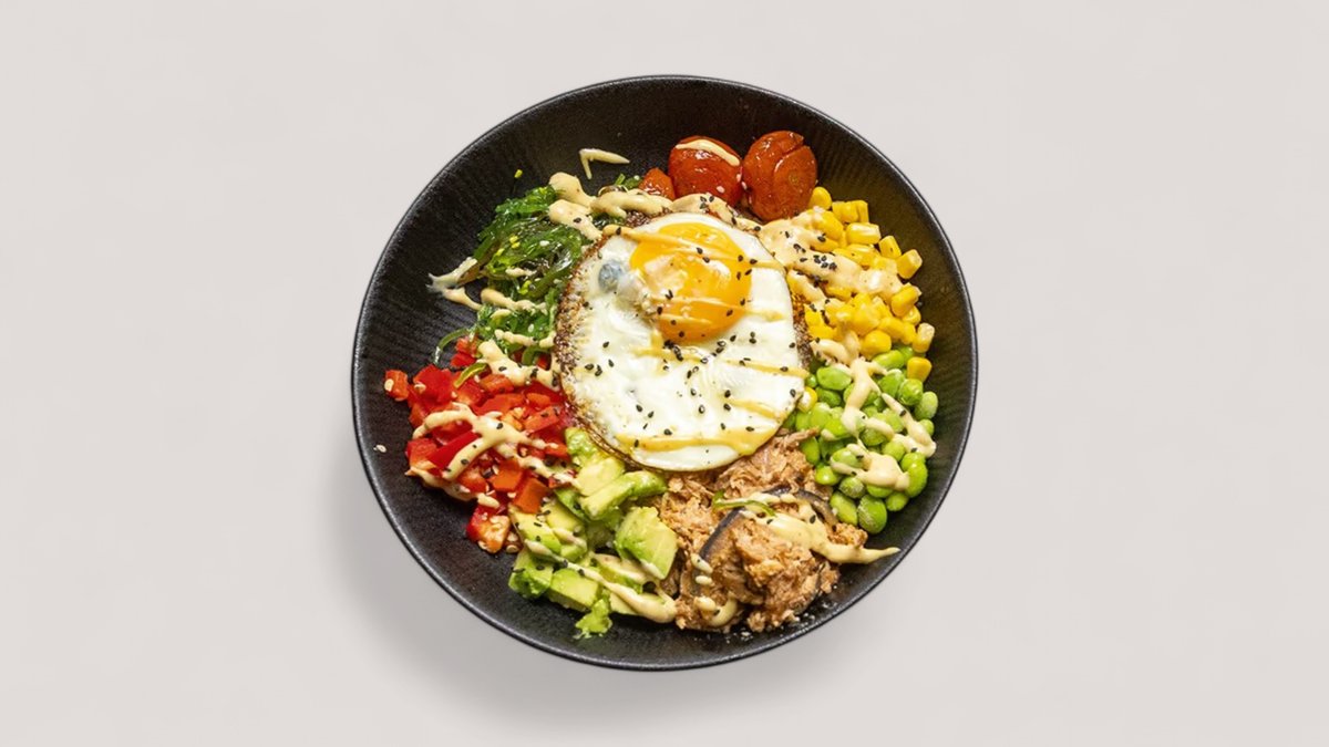 Grilled and smashed turkey, fried egg, jalapeños, fried red onions, edamame, cucumber, sweet corn, roasted tomatoes, seaweed salad, fresh fruits, topped with sesame and roasted onions. served with premium sushi rice