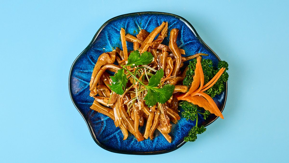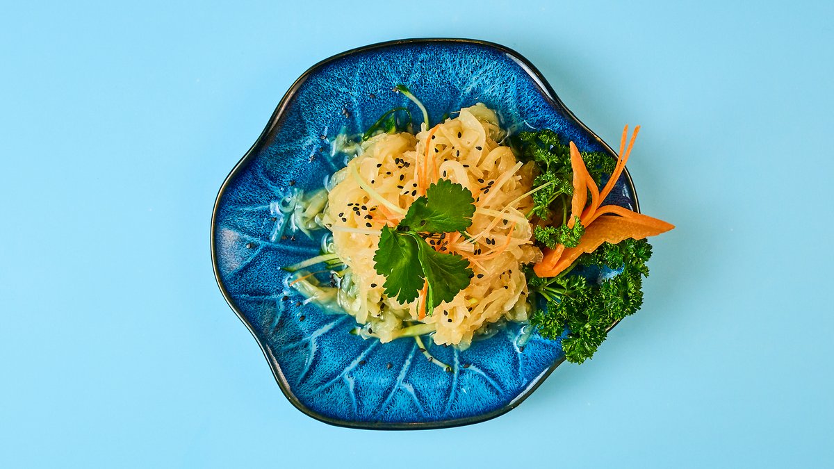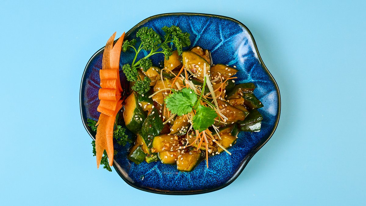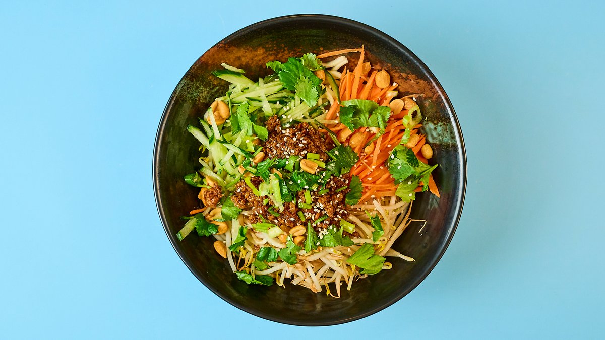 N2. Nudeln mit Gurken, Karotten, Sojasprossen & Schweinefleisch nach Zha-Jiang-Art