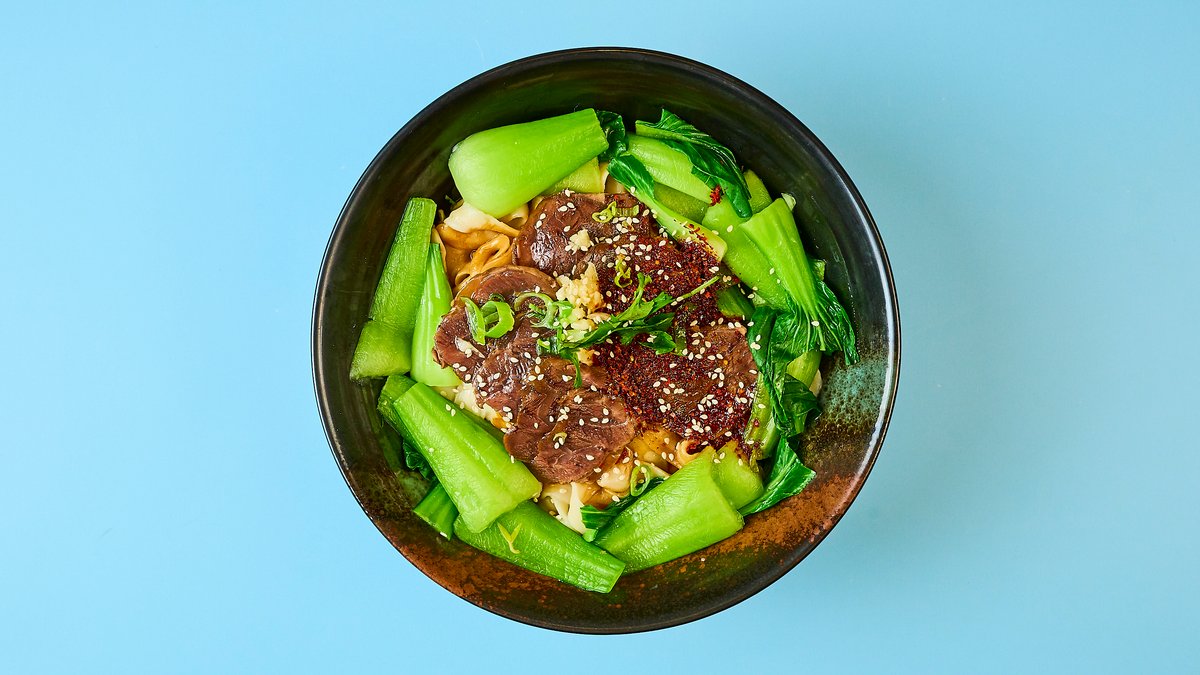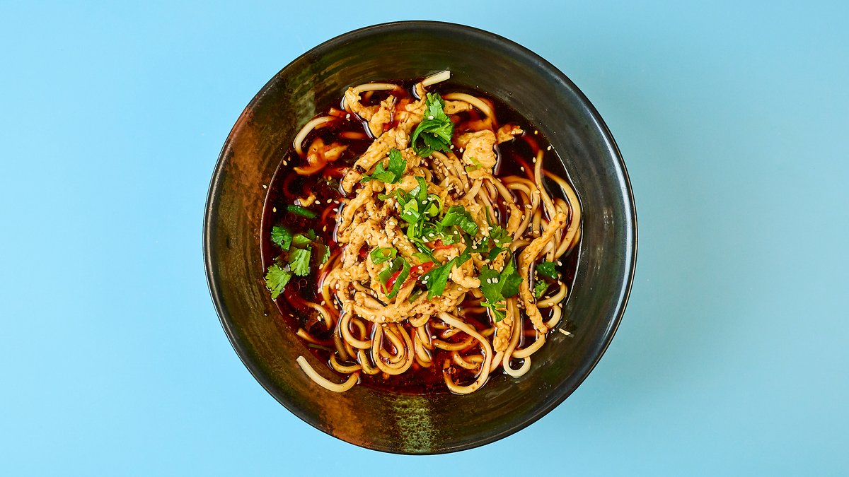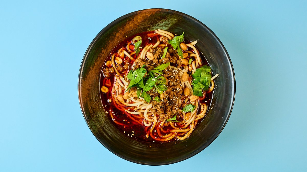 N1. Dan-Dan Nudeln mit Schweinehackfleisch, eingelegtem Gemüse & Sesam