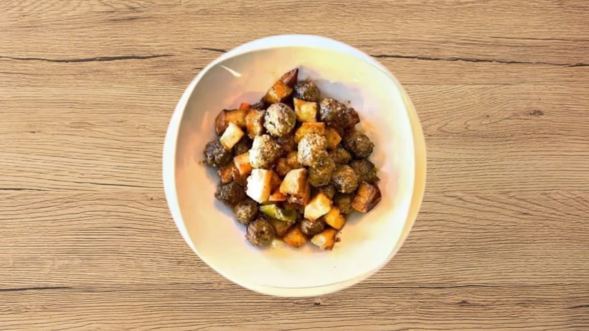 gebratene Hackfleischrollen mit Kartoffeln
