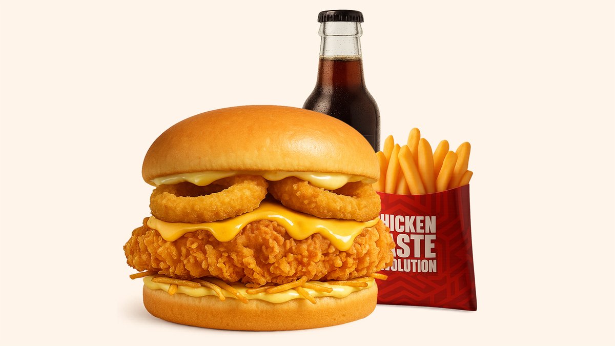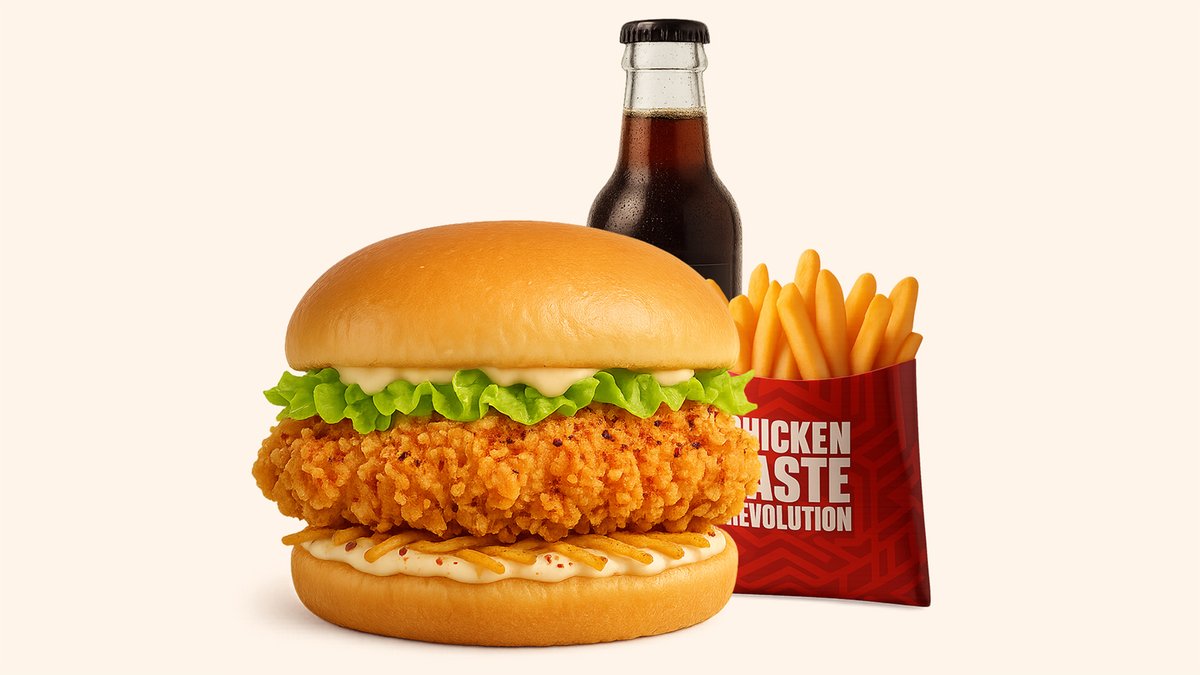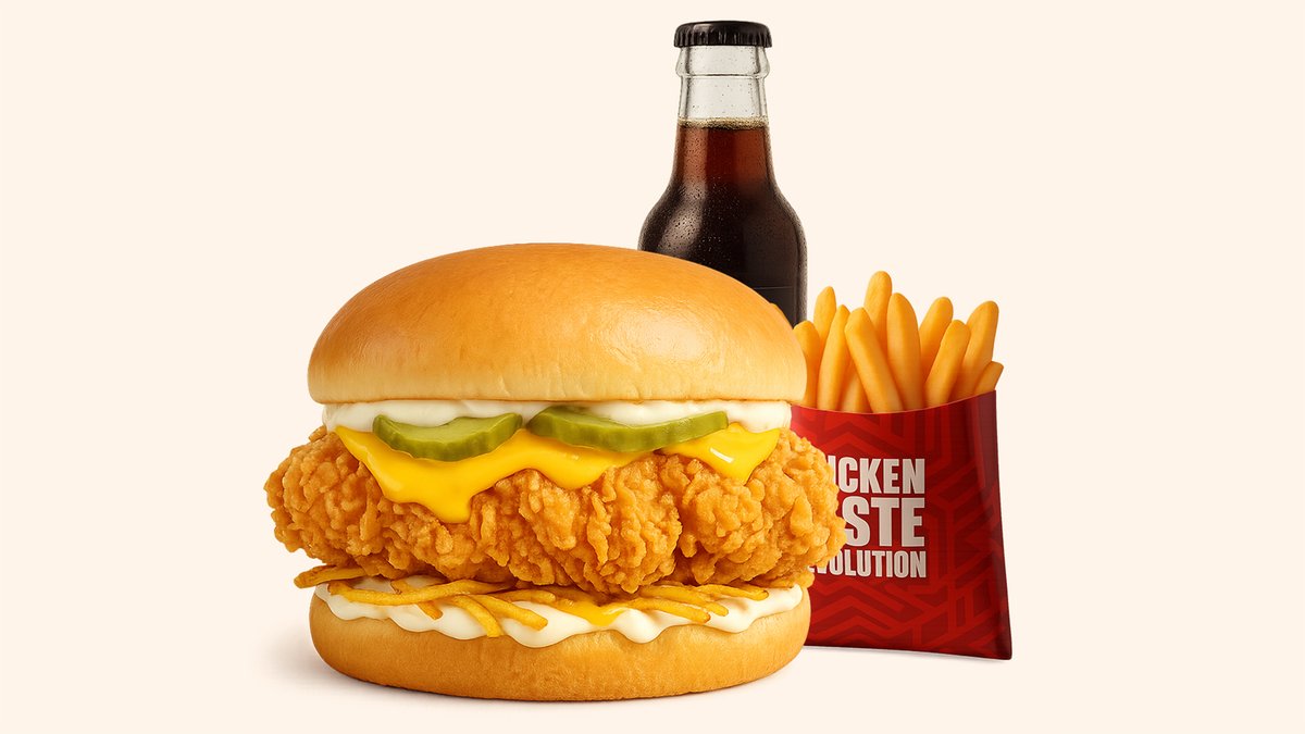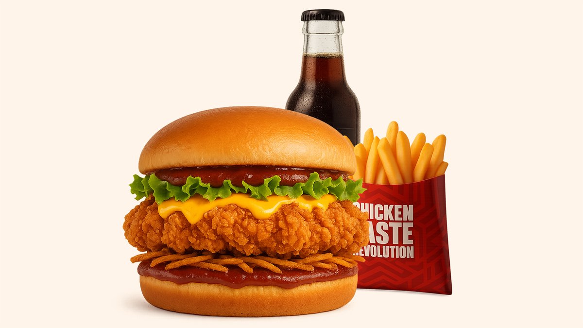 1x Sweet Chicken Burger 1x Pommes frites 1x 0,2 l alkoholfreies Getränk deiner Wahl