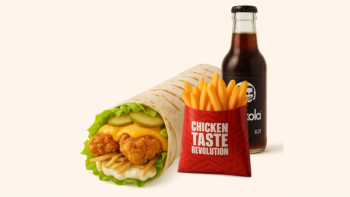 1x CTR Tornado Wrap 1x Pommes frites 1x 0,2 l alkoholfreies Getränk deiner Wahl
