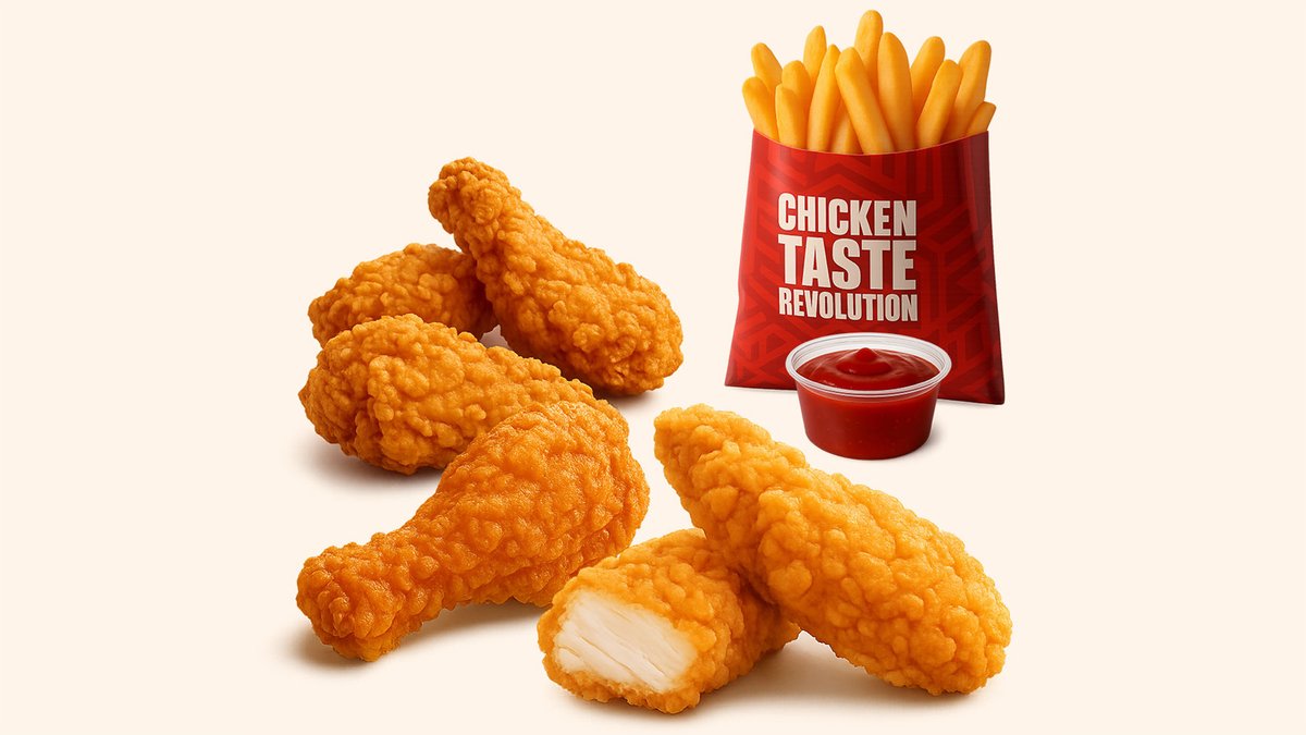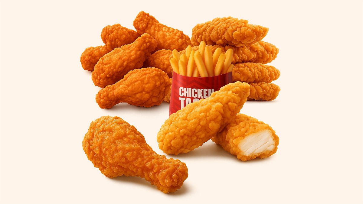4x knusprige Chicken Wings 2x knusprige Tenders 1x Pommes frites 1x Soße deiner Wahl
