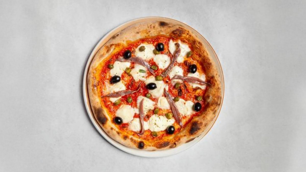 with tomato sauce, buffalo mozzarella D.O.P., anchovies, black olives and capers
