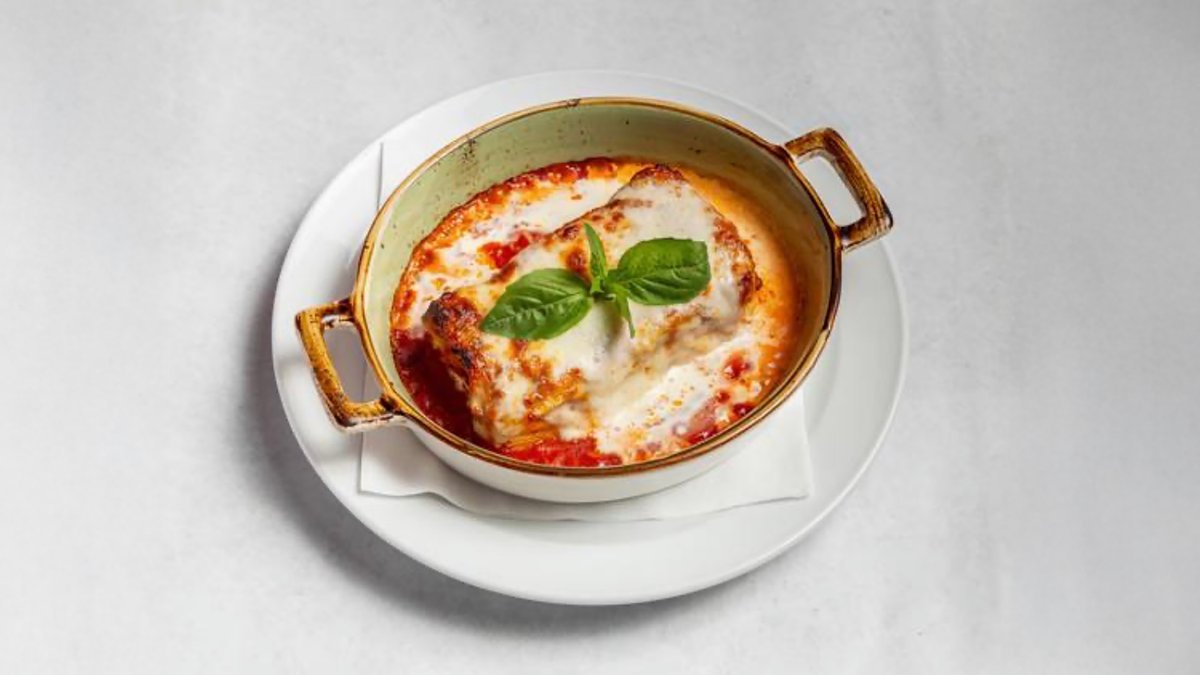 with tomato sauce, buffalo mozzarella D.O.P., grilled eggplant and dried tomatoes
