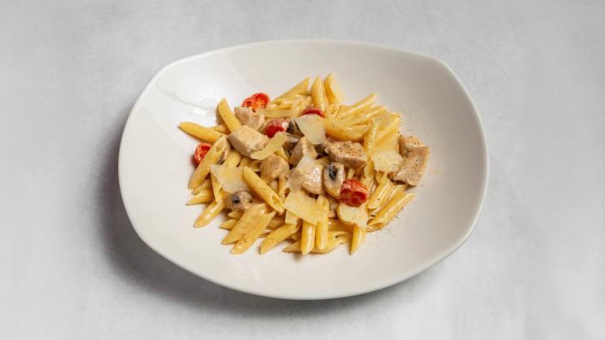 penne pasta, chicken breast fillet, fresh mushrooms and cream sauce