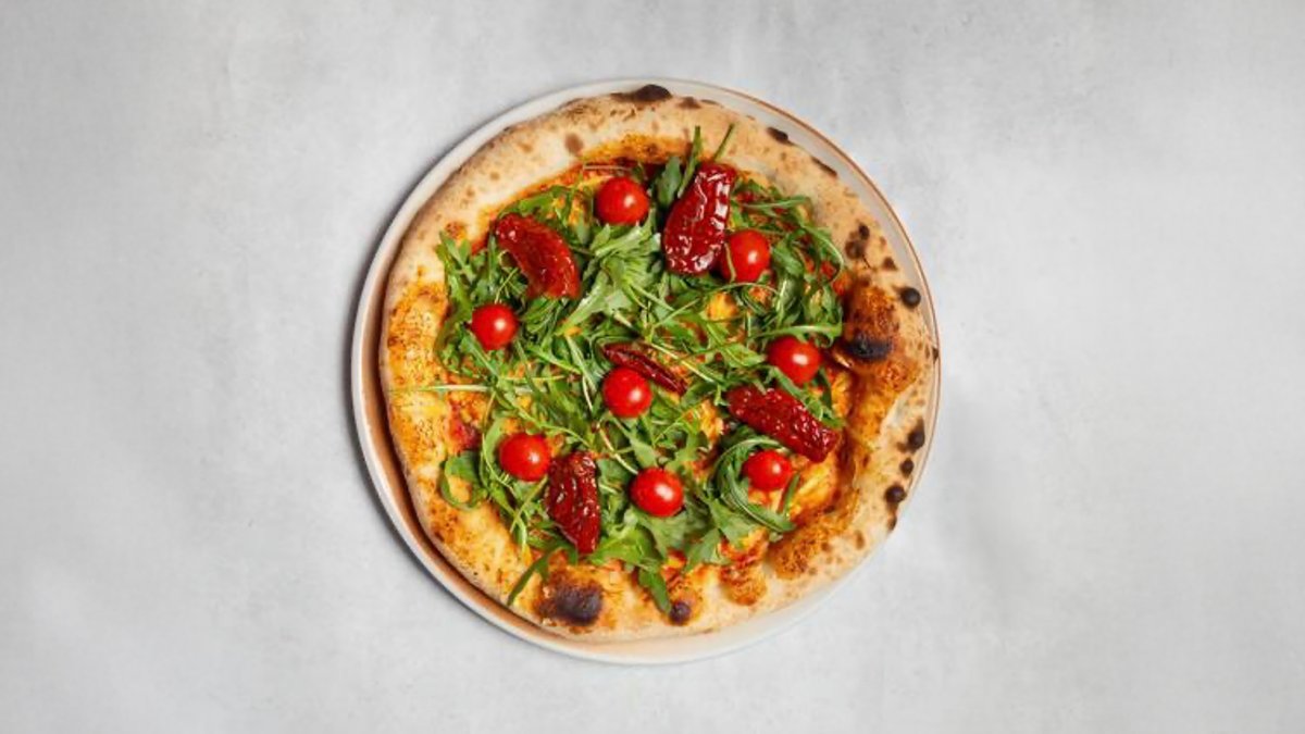 with tomato sauce, Wilmersburger pizza melt, rocket, cherry tomatoes and dried tomatoes