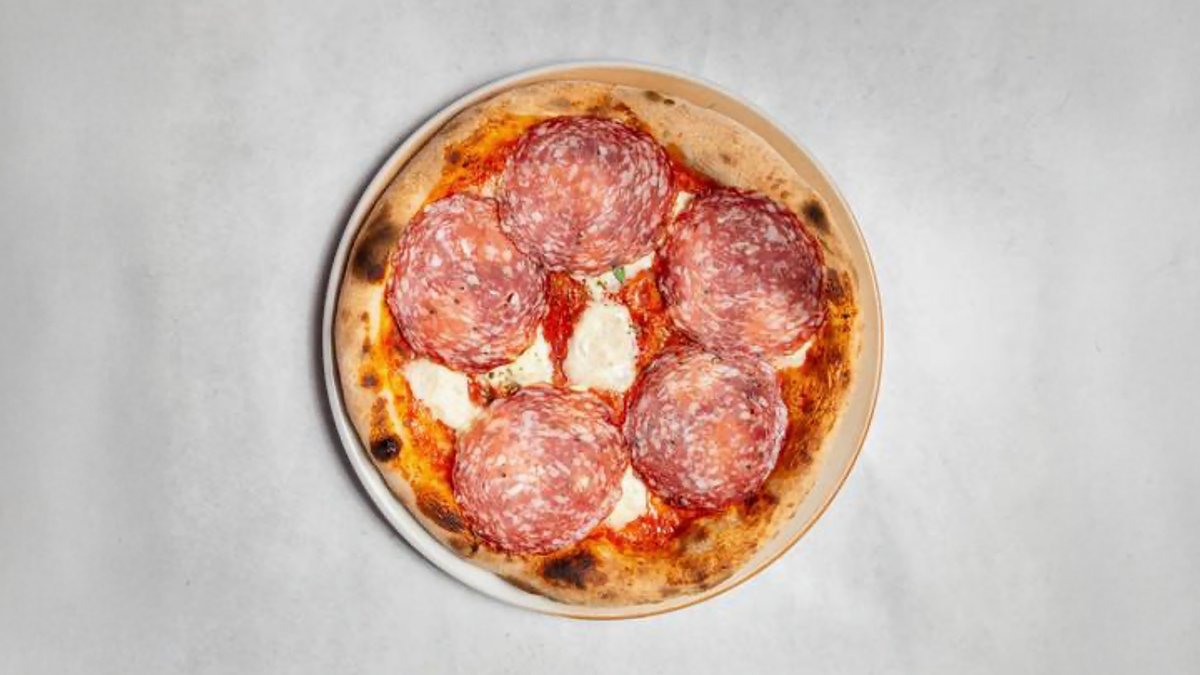with tomato sauce, buffalo mozzarella D.O.P. and fennel salami