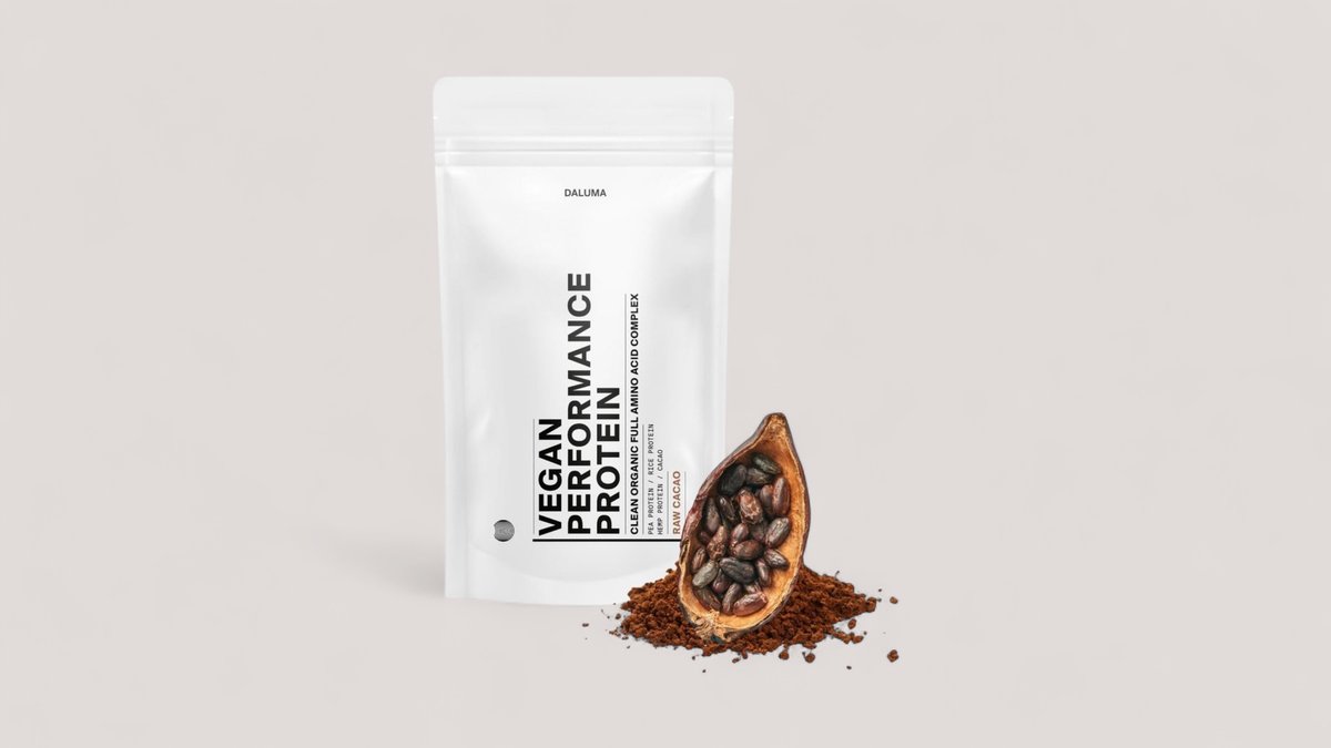with pea protein (38%), rice protein (36.8%), cocoa powder (10%), hemp protein powder (3%), date powder